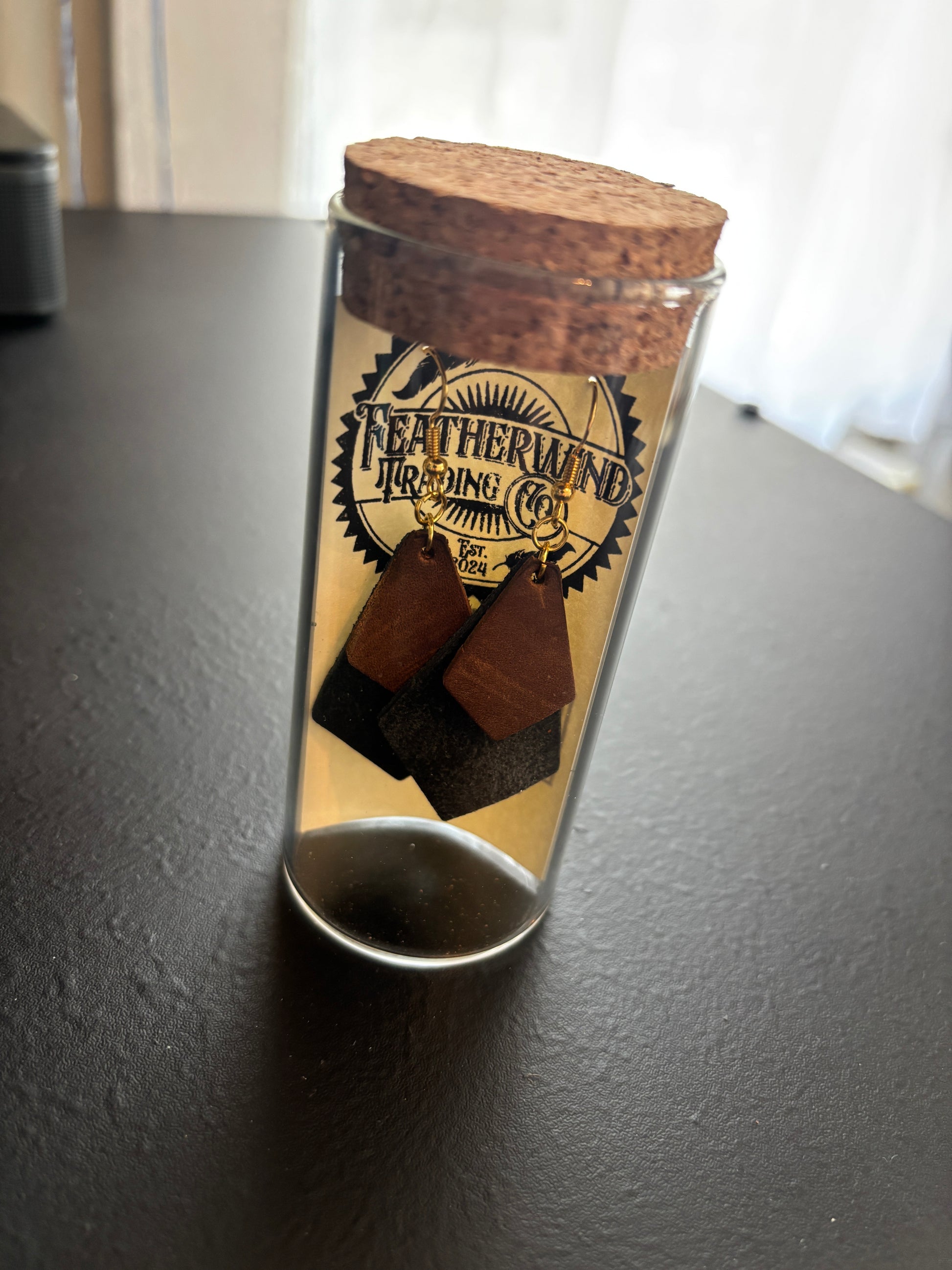Lovely handcrafted leather earrings! Genuine leather. Made in USA.